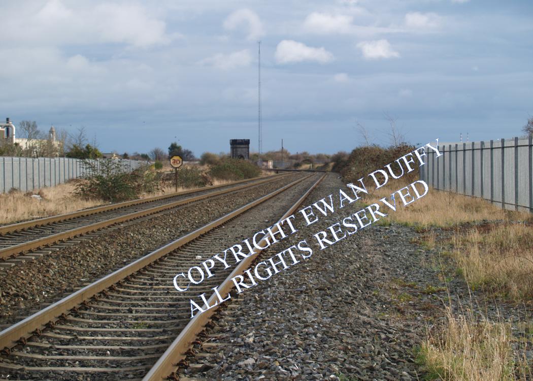 Immediately before the line crosses the Royal Canal at the Dublin Connolly end of the station, is the site of a carriage shed on the Down side. This area is now a community garden. On the opposite side of the canal is the derelict water tower and associated water column on the Sligo line. Beyond this, the Broadstone line trailed in on the Down side. The LUAS cross city line occupies this route and trails in here with the line's depot on the same side. There were previously two island platforms here, one on each side of the running lines and a loading bank on the Down side however, only that on the Up side remains. All traces of the station facilities on the Down side were obliterated as part of the LUAS construction works. The MGWR creosoting plant was on this side of the line also between the junction and Broomebridge. Liffey Junction closed to passengers in 1926 and totally in 1977. There was a block post here until 1991, the signal cabin having been on the Down side adjacent to the radio aerial.