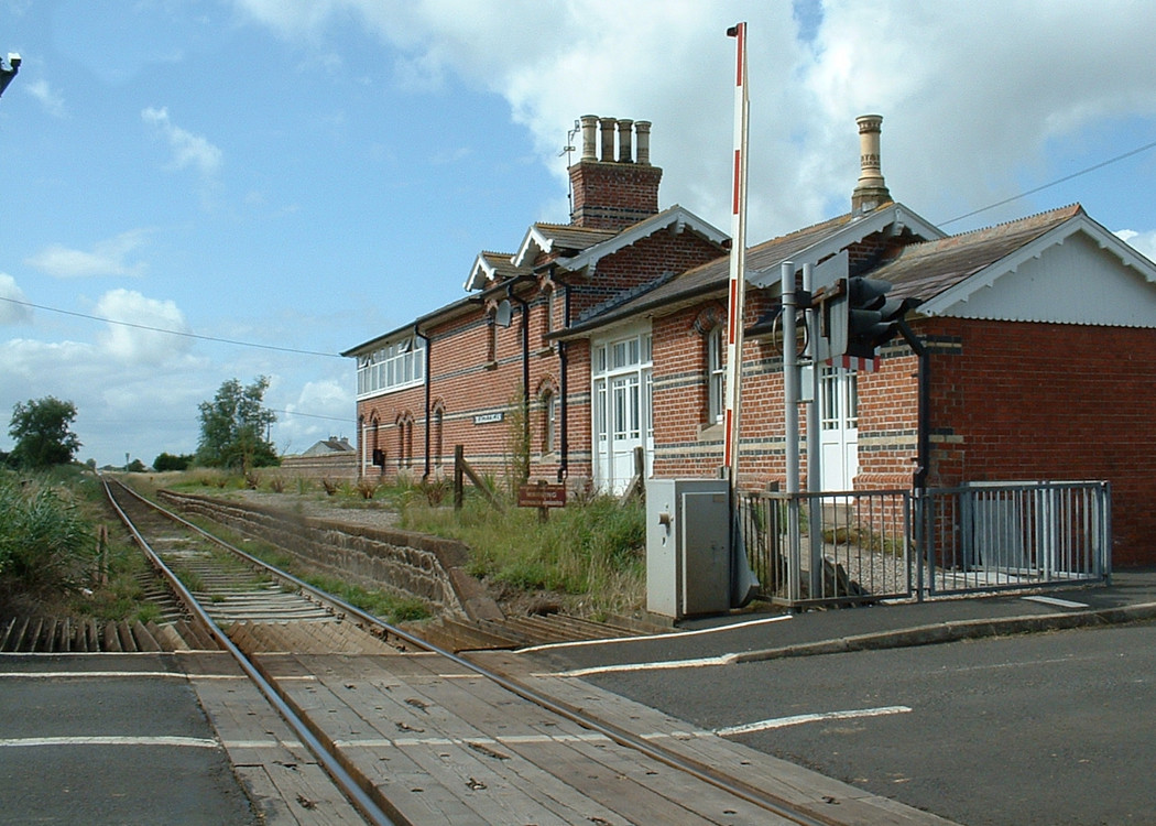 CCTV Level Crossing. There was a station here with a single platform on the Up side on the Derry side of the crossing until 1976. What appears to be the former signal cabin as an integral part of the building at the Derry end of the station is a later addition of non railway vintage.