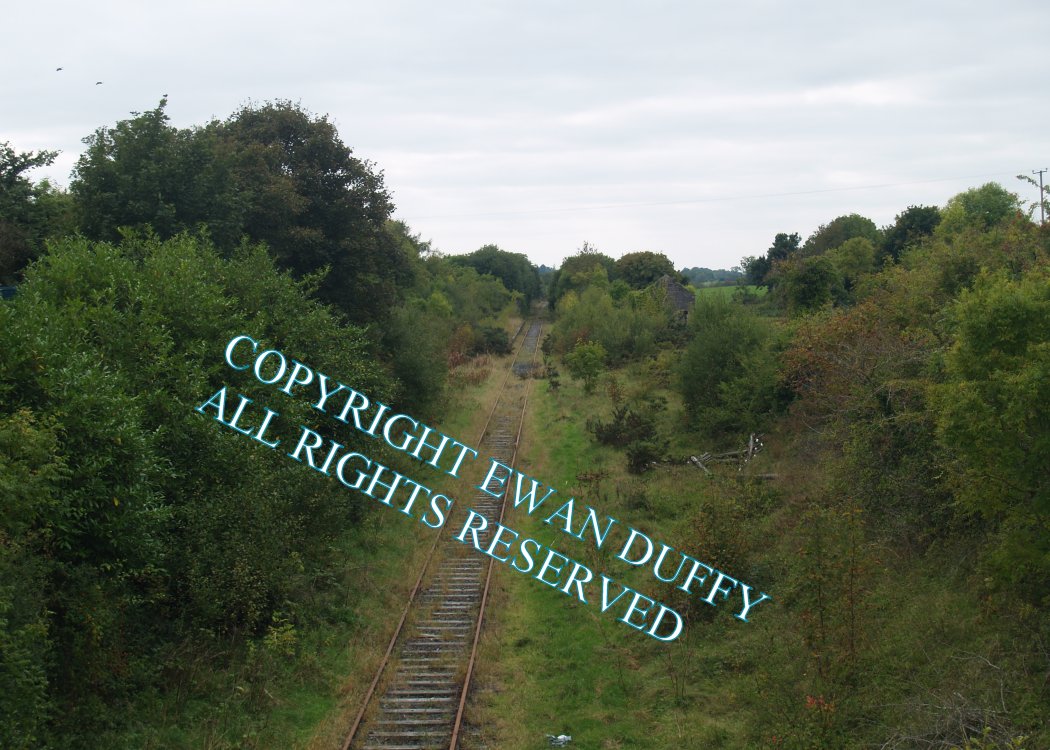 Closed in 1963, this station was the junction for line to Clara. It has two platforms with that on the Down side having two faces, the far face being used for Clara branch trains. The station buildings were on this side also, with a waiting room and goods store on the Up side.